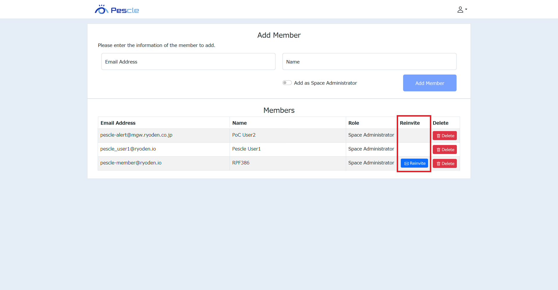 If you are asked to resubmit, please refer to How to Add Members and go to the member addition screen.A “Reinvite” button will appear for members who need to be reinvited.